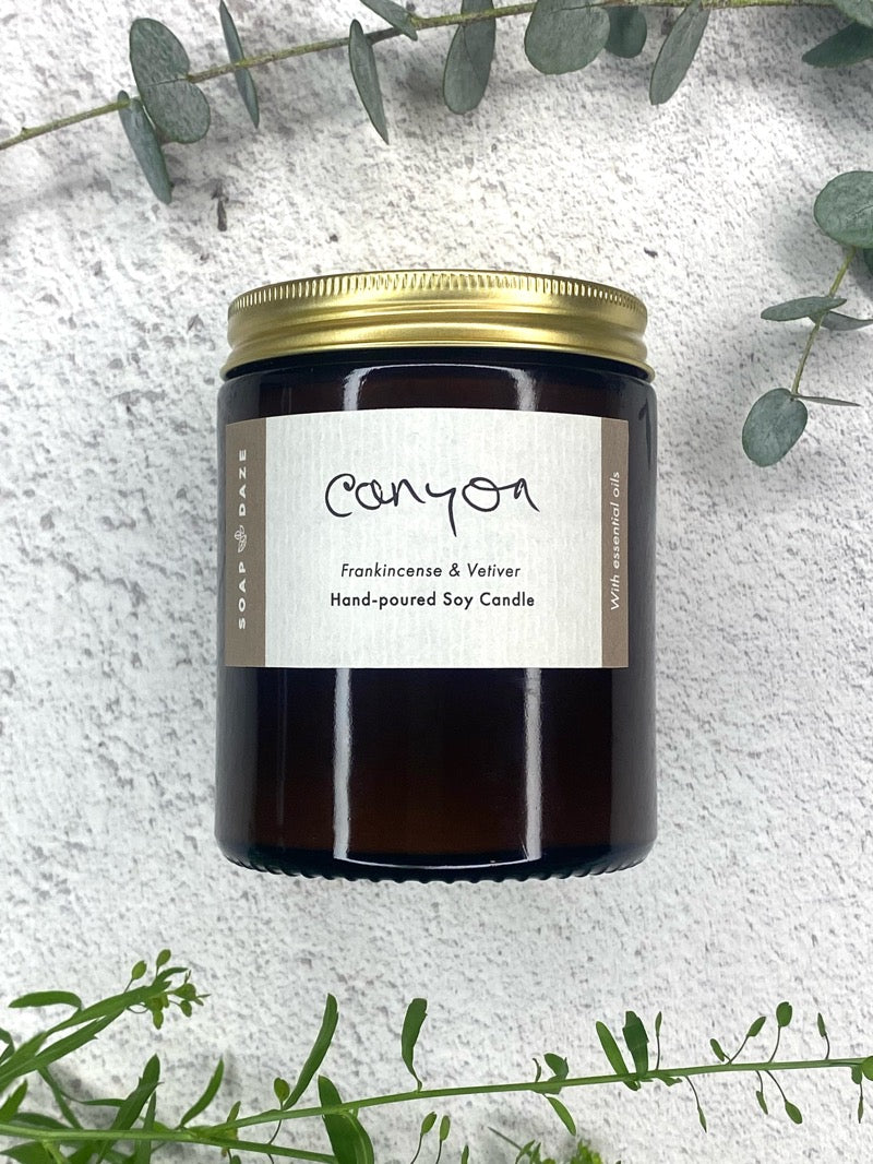 The Canyon essential oil blend was developed as part of the Harmony range of soaps, and there is also a candle to match. It has a has a smoky earthy scent from the vetiver, with a grounding balance of frankincense.