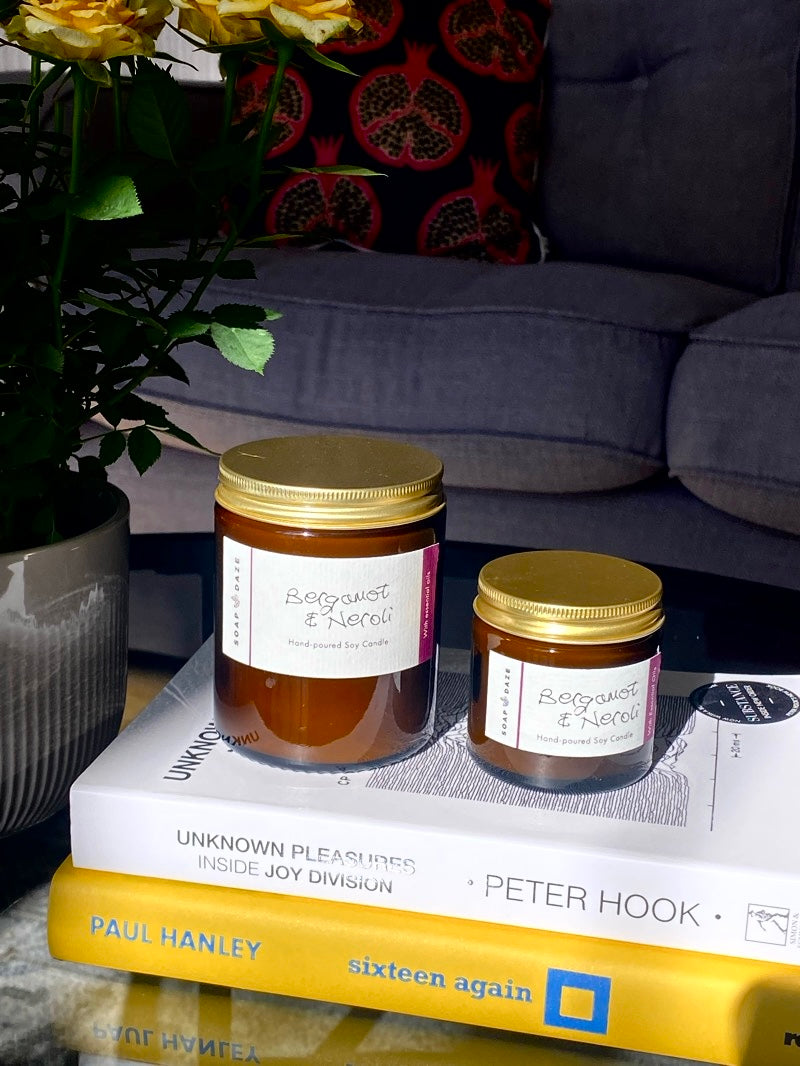 The Bergamot and Neroli soy wax candle has a sweet and intense scent. Created using the unique essential oil blend of our signature scents from our soap collection, I love it!